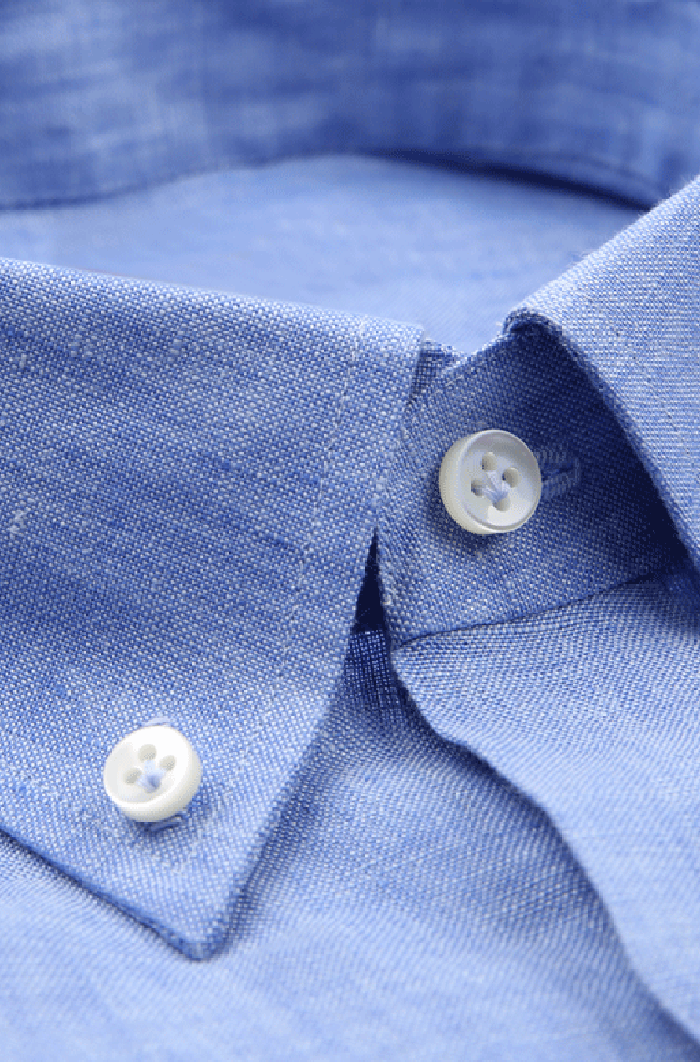 細(xì)節(jié):本款藍(lán)色手工襯衫為釘扣領(lǐng)設(shè)計(jì),兩枚釘扣將領(lǐng)尖固定的硬挺而有型,在休閑中多添了一絲嚴(yán)謹(jǐn),在嚴(yán)肅中又注入了一絲運(yùn)動(dòng)風(fēng),可正式可休閑,文藝又儒雅。再加上極度舒適的天藍(lán)色調(diào),男士們穿上一定清新優(yōu)雅,魅力非凡。