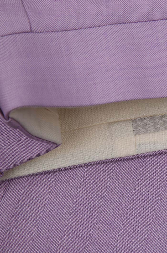 細節:頗具浪漫情愫的淺紫色套裝能輕而易舉的讓有型有版的套裝變得靈活、活潑起來,不再沉悶、硬朗,反而百般溫順、千般柔軟,很適合營造清新自然的風格,也能改變搭配適合日常穿著,商務休閑兩用,實用性極高。